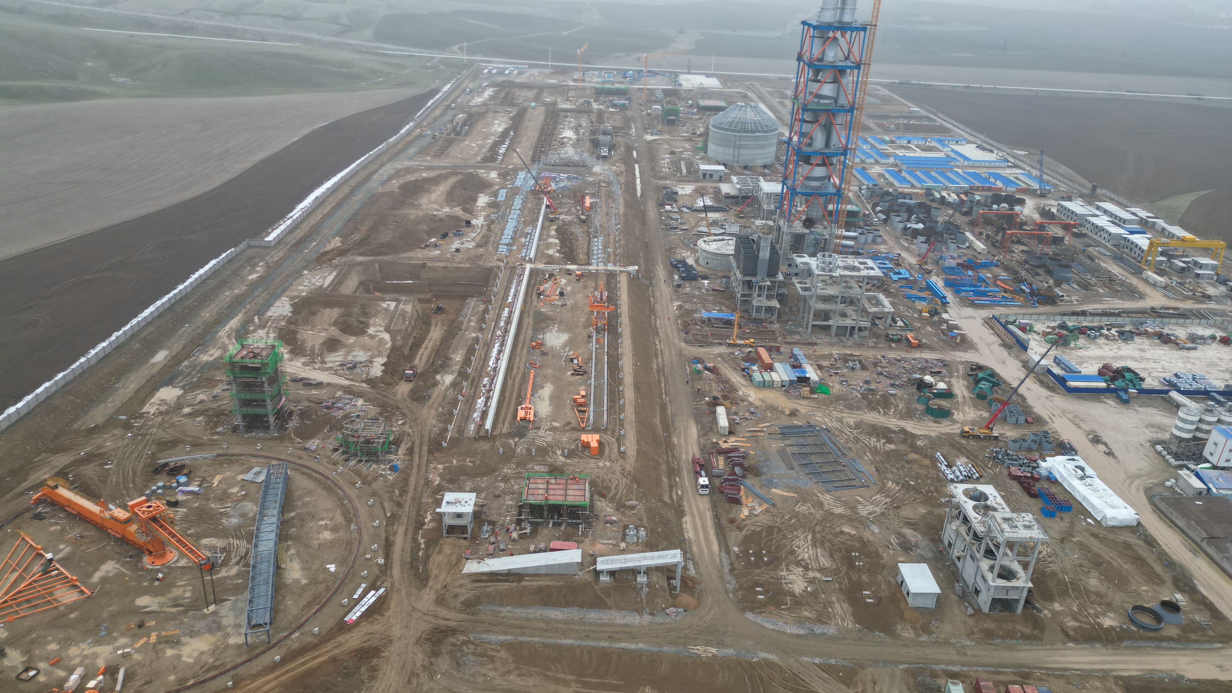 2023年12月2日,原料粉磨24m平面顺利浇筑完成。至此,由溧阳中材EPC总承包我公司施工承包的哈萨克斯坦科尔西姆项目3500t/d熟料水泥生产线建设工程项目原料系统及熟料系统主体框架均施工完成并顺利交付安装。