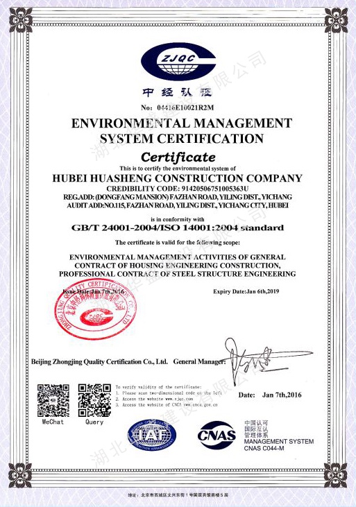 环境管理体系认证证书E