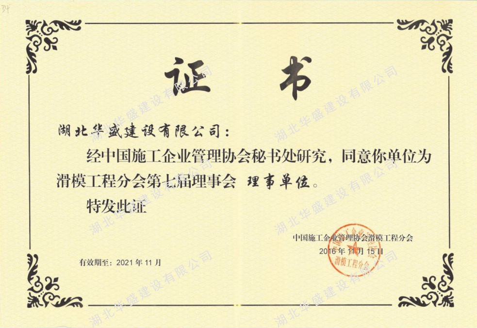 滑模工程理事单位证书