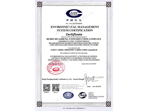 环境管理体系认证证书