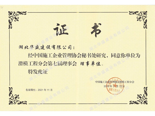 滑模工程理事单位证书