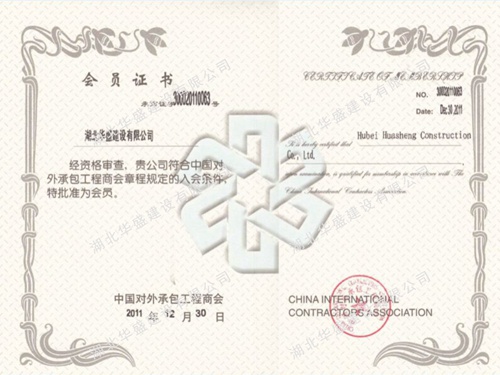 中国对外承包工程商会会员证书